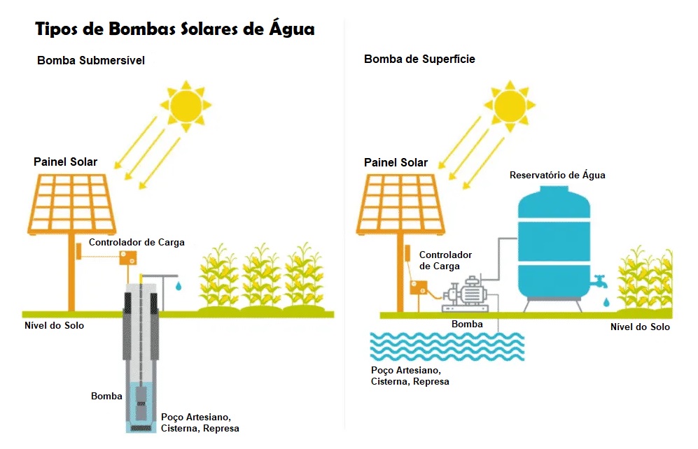 Os sistemas de geração solar fotovoltaica rural autônomos sem banco de baterias são utilizados para o acionamento de bombas solares ou uso da energia instantaneamente nos períodos de sol, na irrigação ou na dessedentação animal, ou para o bombeamento da água para reservatórios elevados para a utilização da mesma em qualquer momento de necessidade.